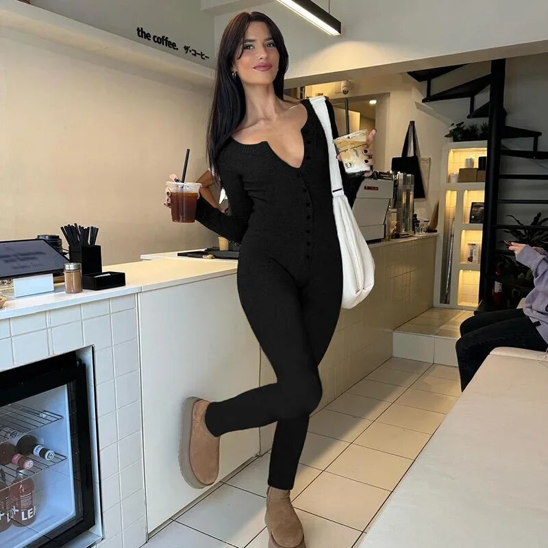 Conforto e flexibilidade no encontro: Feito com uma combinação de tecidos de qualidade, esse macacão combina perfeitamente com as formas do corpo, permitindo total liberdade de movimento, ideal para uma mulher ativa e elegante.