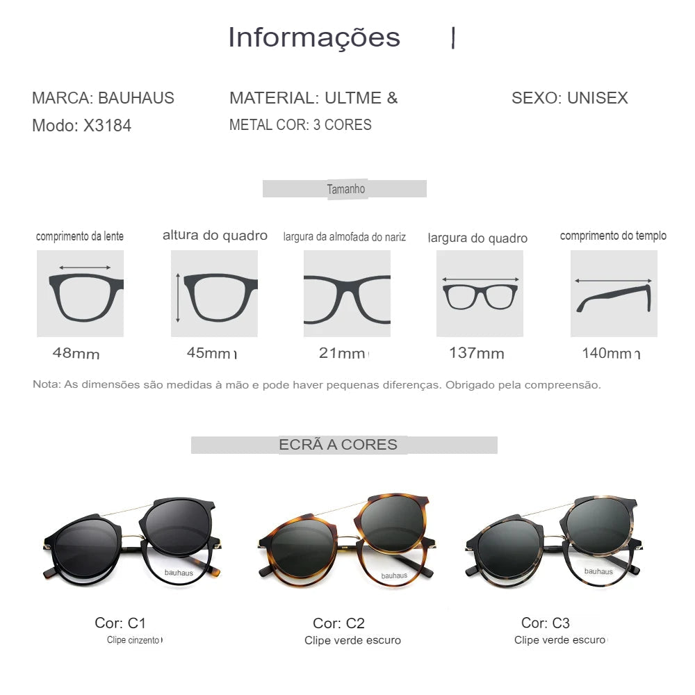 Armação Para Óculos de Grau 2 em 1 Polarizado bauhaus