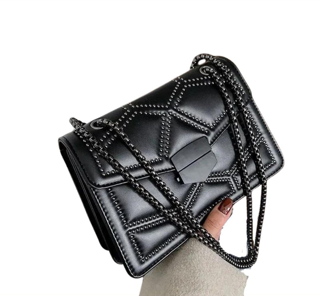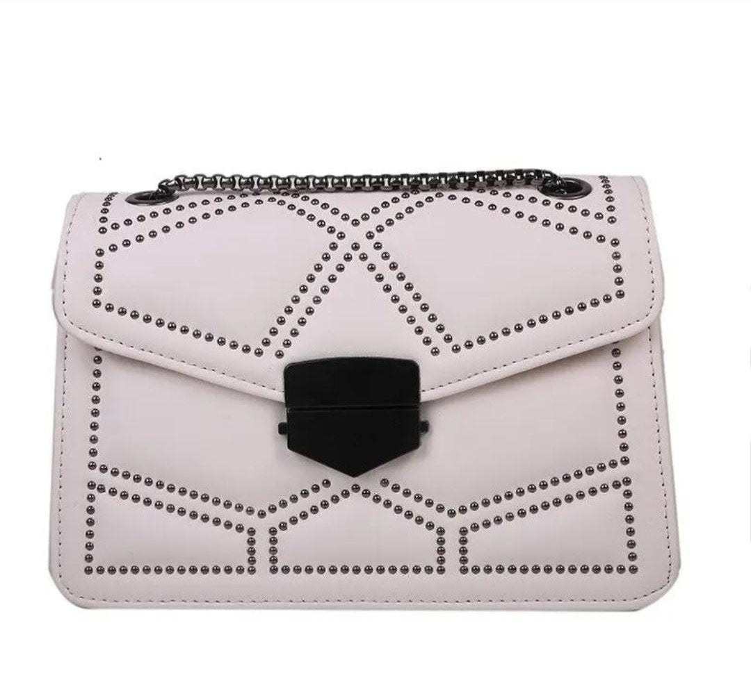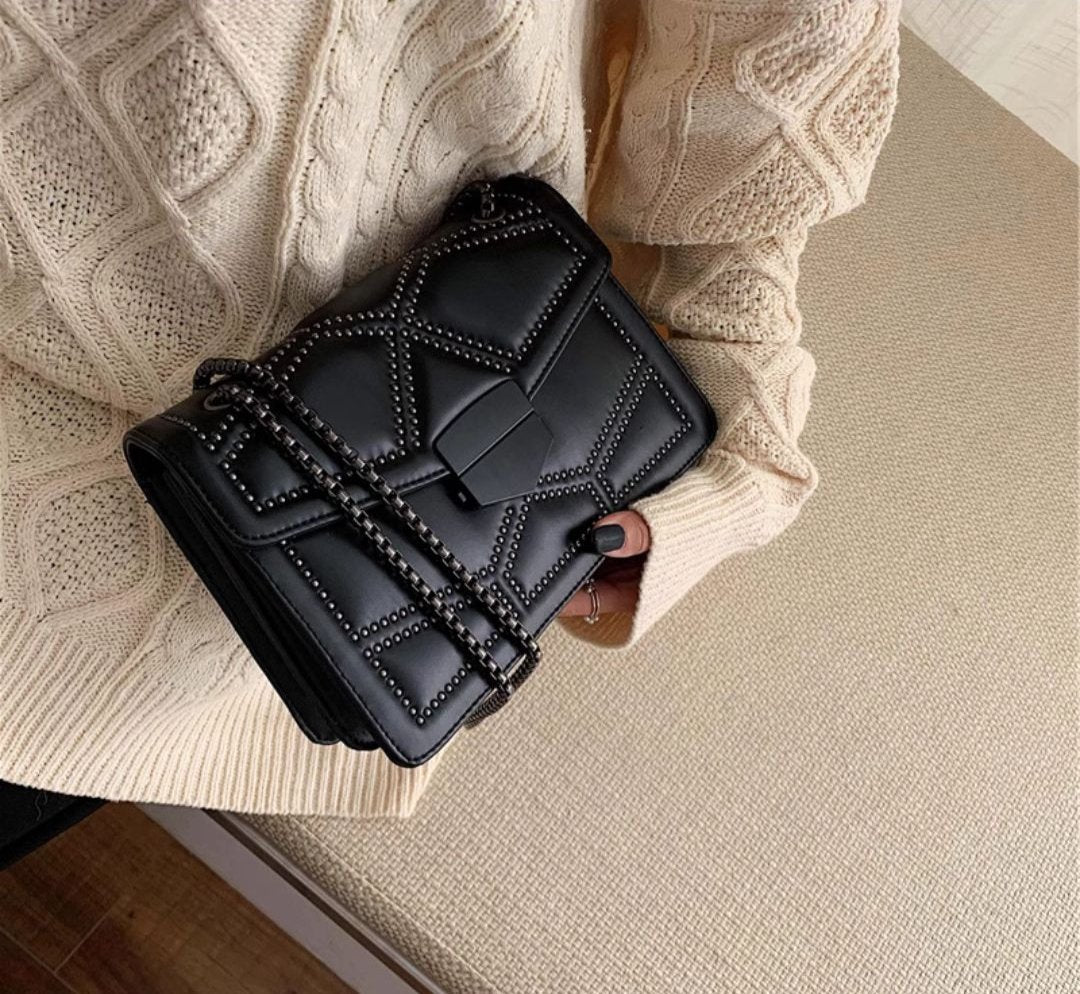 Além do seu visual encantador, essa bolsa também oferece praticidade e organização. Seus compartimentos são espaçosos e bem estruturados, possui um desingn moderno, toda decorada em rebite e correntes.