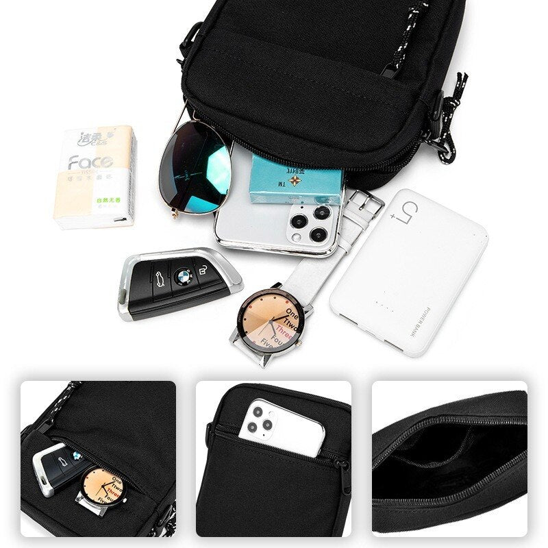 Com um espaço otimizado, essa bolsa masculina transversal é perfeita para carregar seus itens essenciais com facilidade. Seu tamanho compacto permite que você a use durante o dia a dia ou em viagens, mantendo suas mãos livres e seu estilo em alta.