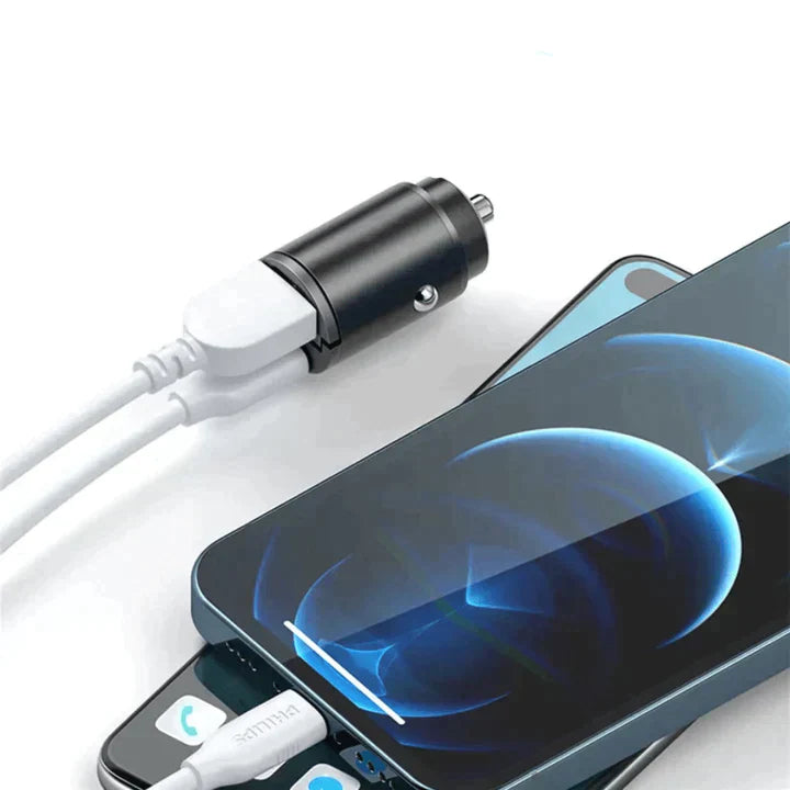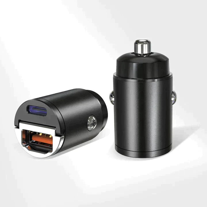 Este carregador é super compacto e possui dupla saída USB A e USB tipo C, você pode carregar dois dispositivos simultaneamente, para que você e seu passageiro nunca precisem disputar pela carga do celular.