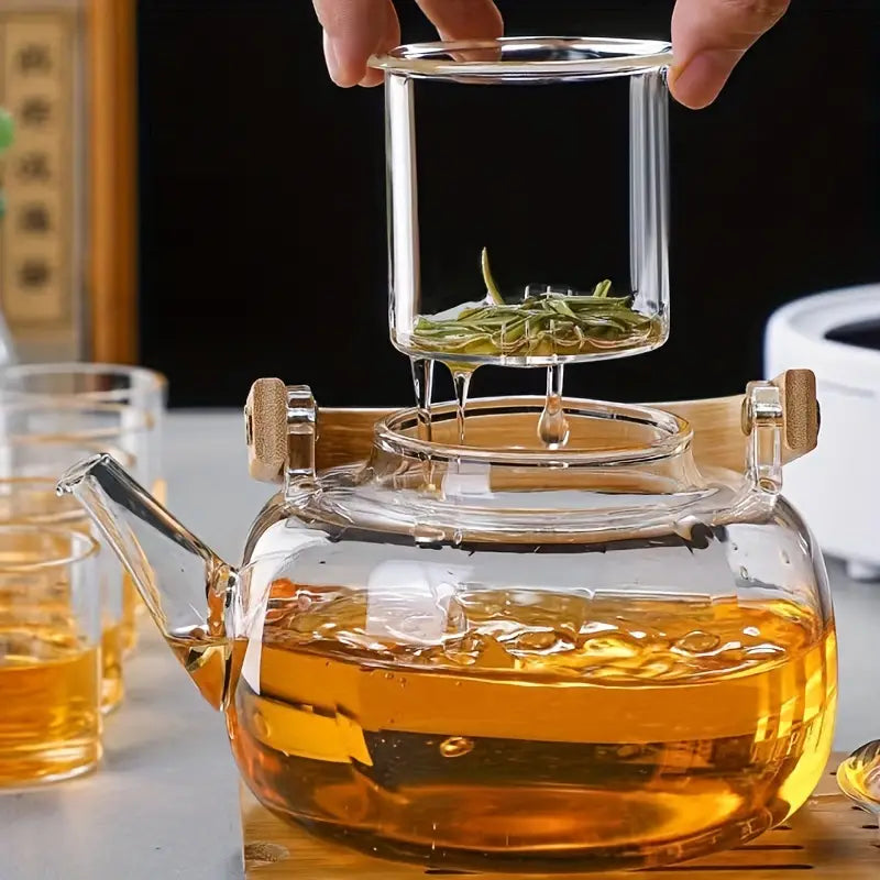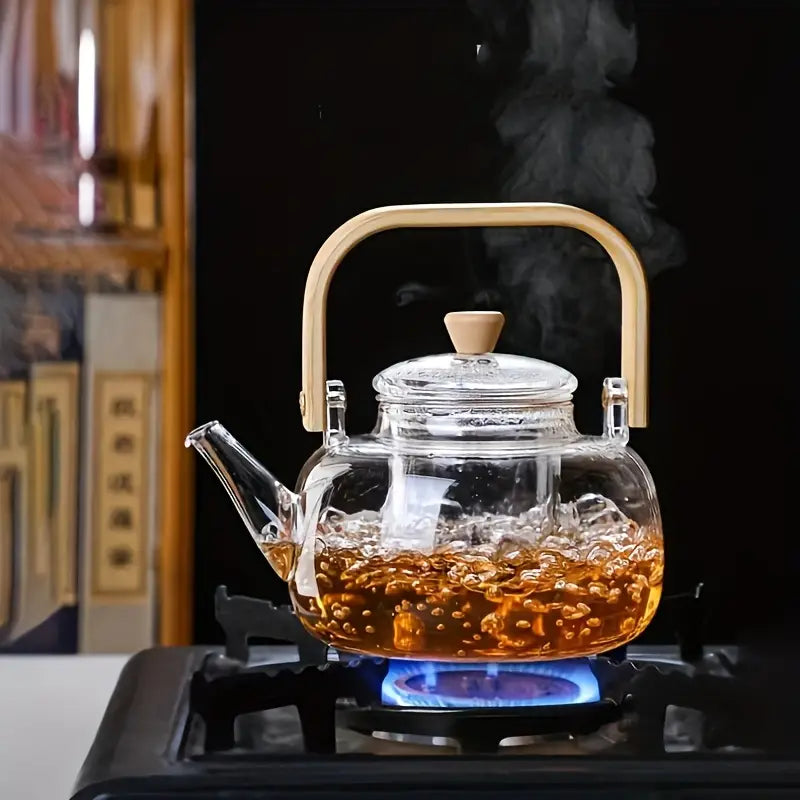 Transforme sua rotina de preparo de bebidas com a nossa Chaleira de Vidro com Tampa de Bambu. Este elegante acessório combina a robustez do vidro resistente ao calor com o charme natural da tampa de bambu, criando uma peça prática e estilosa para sua cozinha. Perfeita para preparar chás, cafés e outras bebidas quentes, a chaleira proporciona uma experiência de uso sofisticada e eficiente.