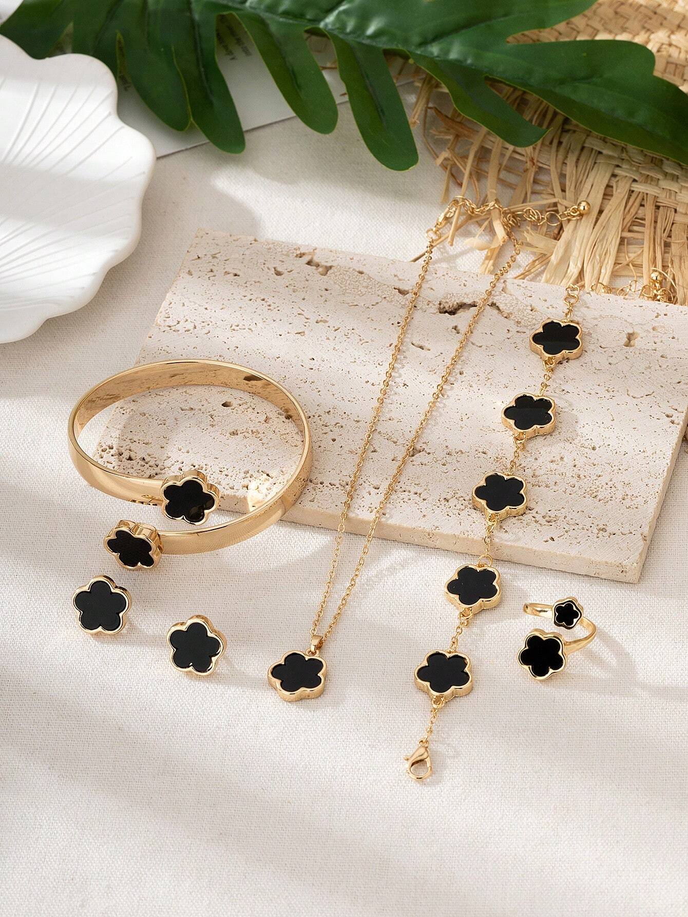 Conjunto 5 Peças Trevo De Quatro Folhas Da Sorte Preto