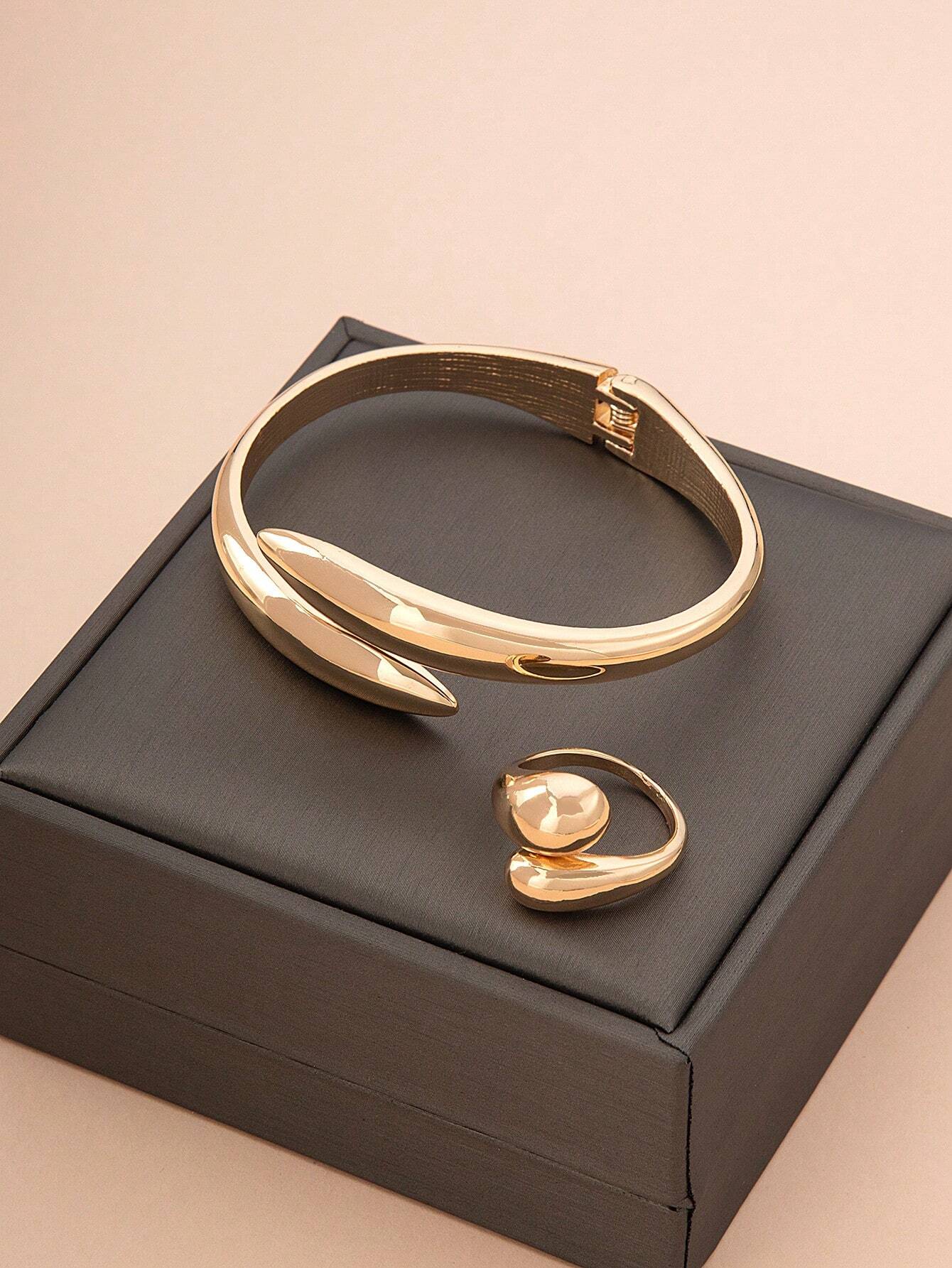 Design Elegante: Com um acabamento dourado refinado, tanto a pulseira quanto o anel oferecem um design moderno e sofisticado, ideal para qualquer ocasião.