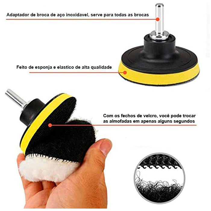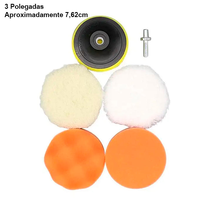 Com este conjunto abrangente de almofadas e acessórios, você está pronto para enfrentar qualquer desafio de polimento e garantir um acabamento impecável em seu carro e outras superfícies.