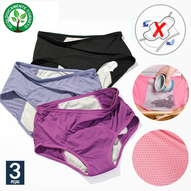 3x Calcinhas Absorventes Lavável e Reutilizável