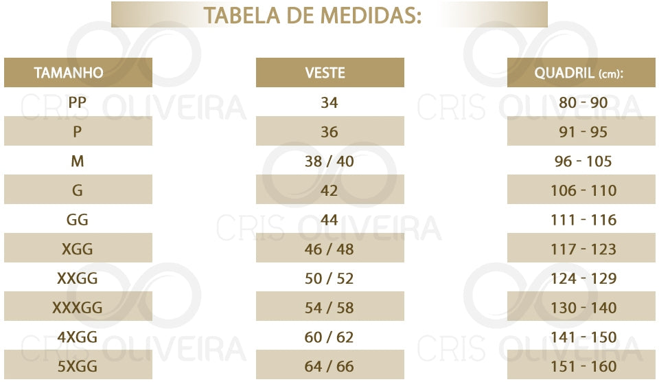 Abaixo, já fornecemos ao cliente a tabela convertida, com as referências do Brasil. A etiqueta da peça possui referências da fabricante, onde cada letra(tamanho) presente na etiqueta da peça recebida, estará correspondente as medidas da tabela abaixo, da seguinte forma: