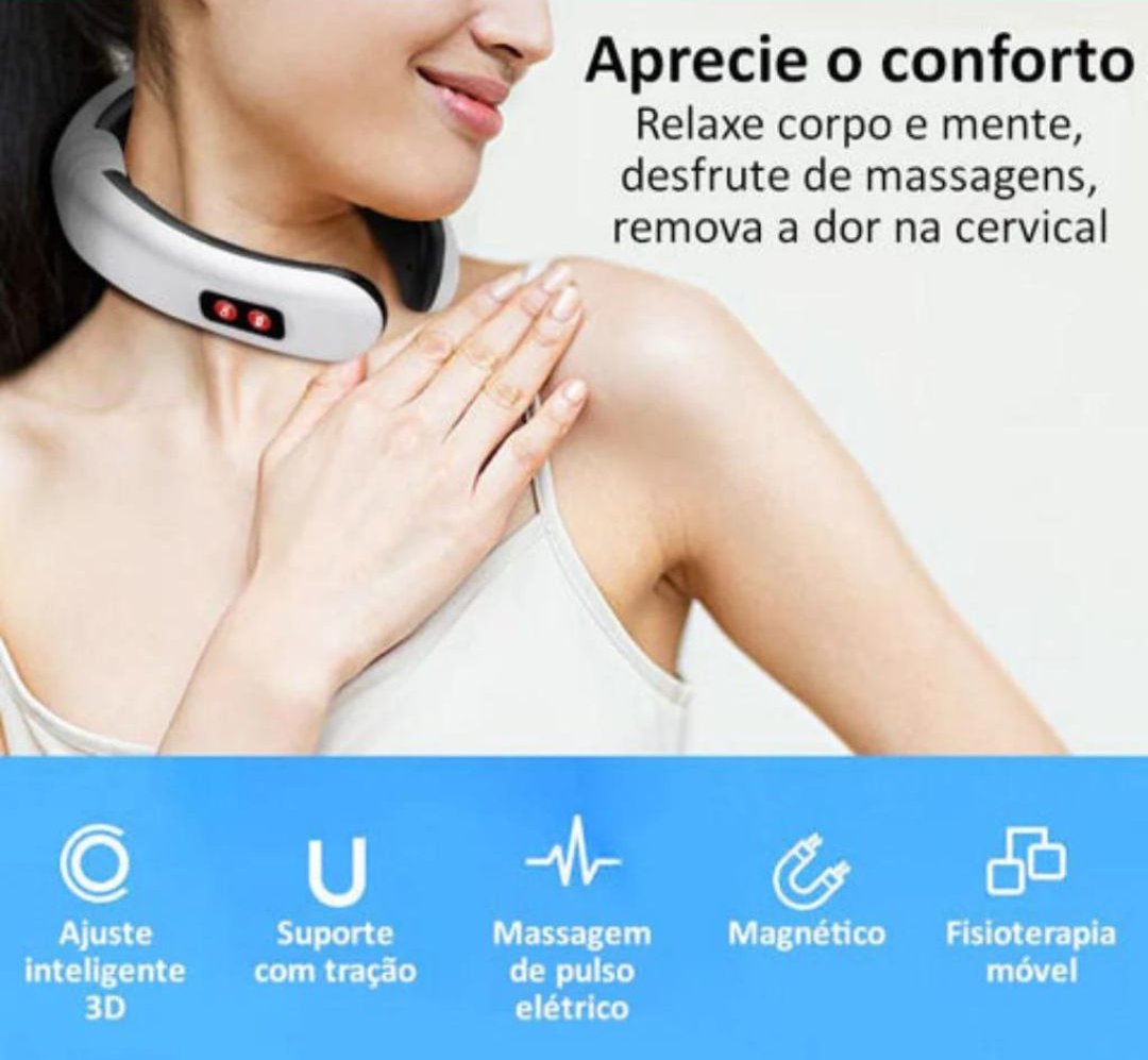 Conheça nosso Massageador de Pescoço MaxPro, alivie dores e tensões em poucos minutos, fácil de usar e muito prático. Este é um massageador de pescoço de pulso elétrico com ímãs embutidos que fornece massagem para pontos de acupuntura. Não só relaxa o tecido muscular estressado, mas também melhora a circulação sanguínea. Com design moderno e sofisticado, o Massageador de pescoço3D é ideal para dores ocasionadas pelo estresse e tensões musculares do dia a dia