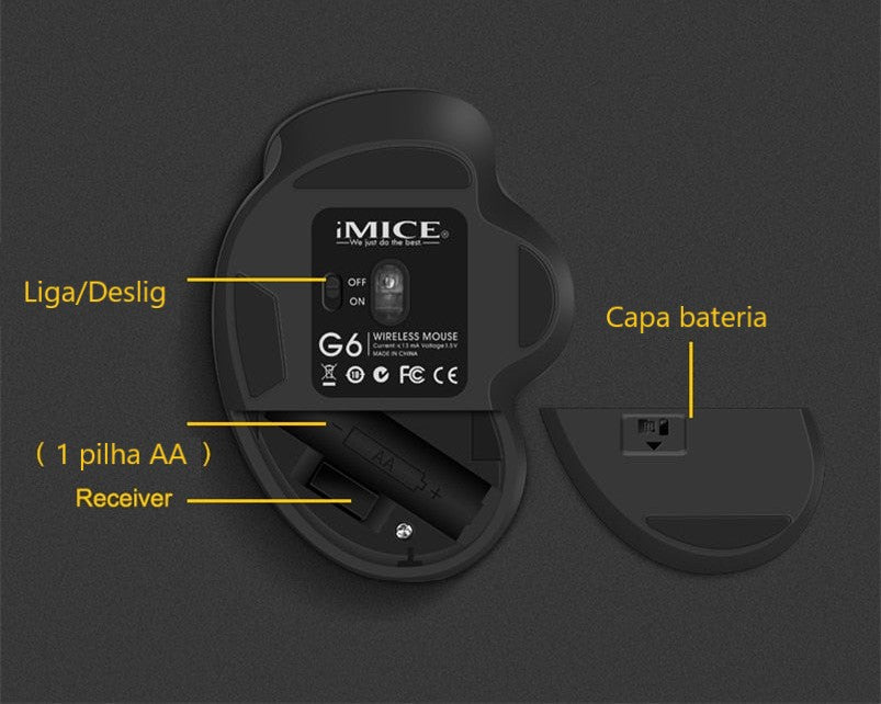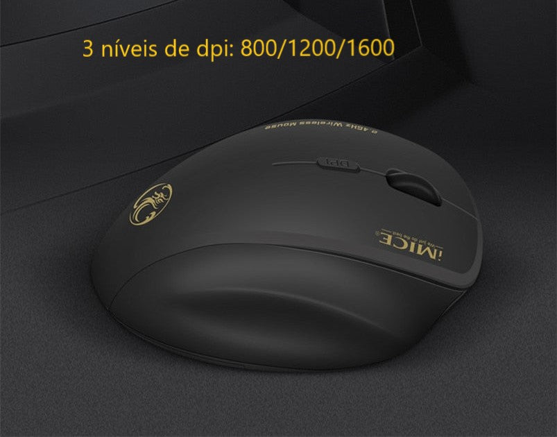 Experimente o conforto e a praticidade definitivos com o nosso Mouse Ergonômico Sem Fio MICE, equipado com 6 botões e uma precisão de até 1600 dpi!