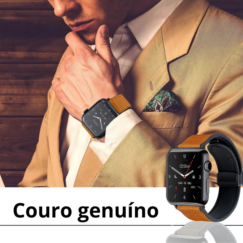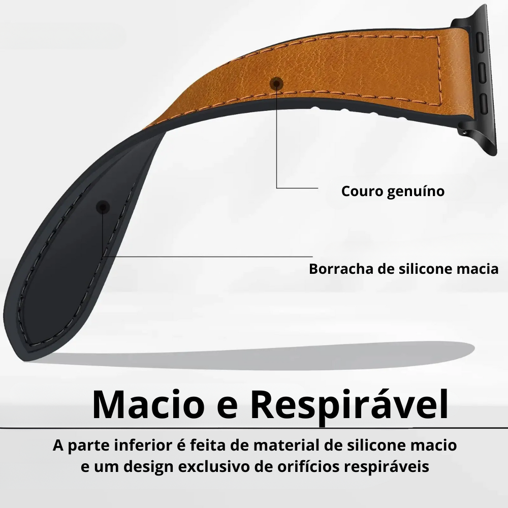 Pulseira Magnética de Couro Genuíno e Silicone para Apple Watch Band - Série 9, 8, 7, 6, SE, Ultra 2