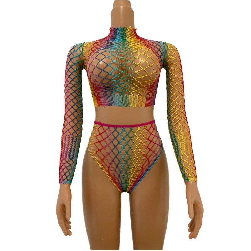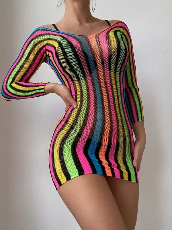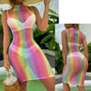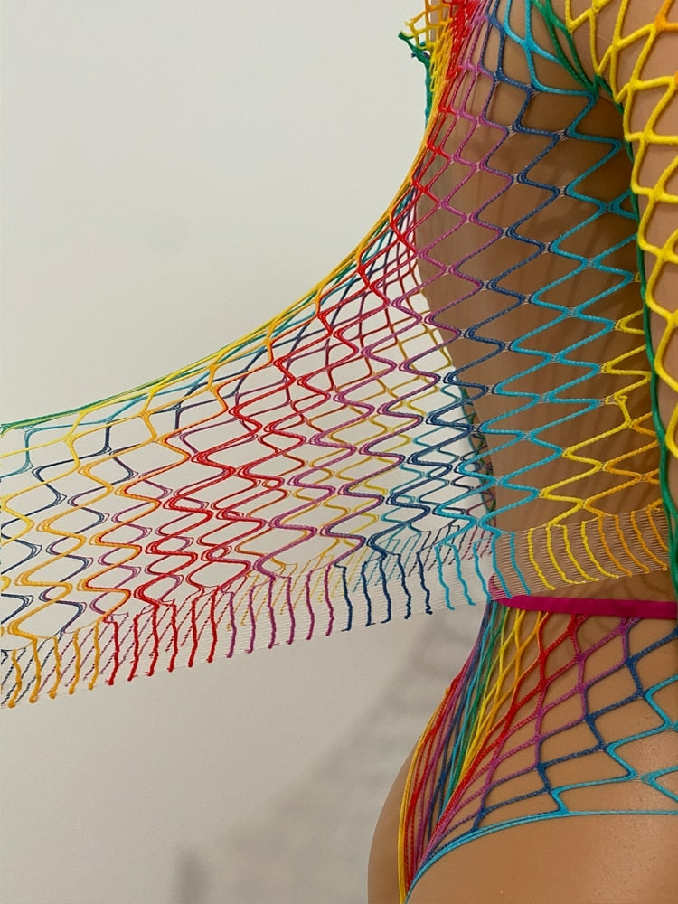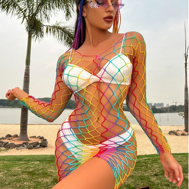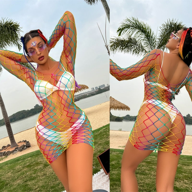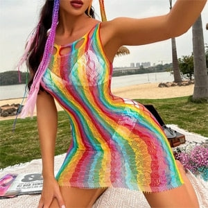 Saida de praia arco-íris malha vazada de croche, super sexy.